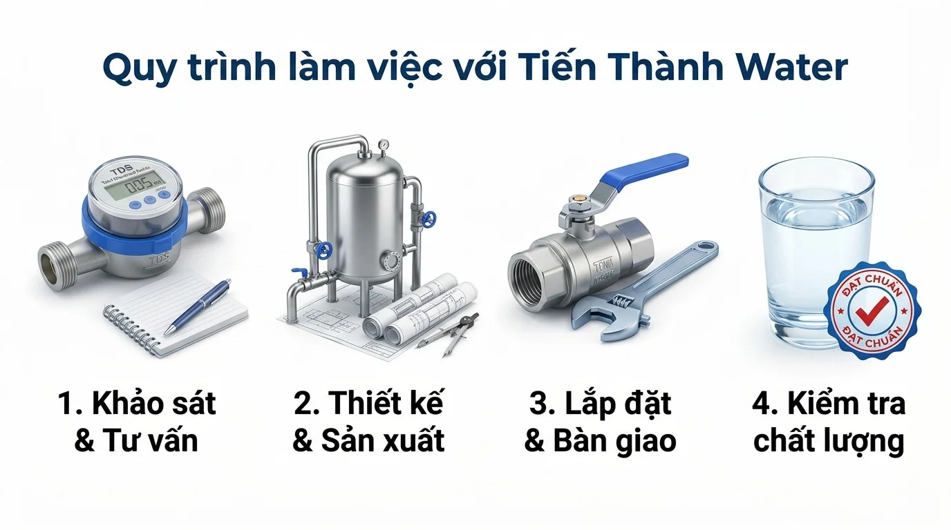 - Dịch vụ tận tâm: Tiến Thành Water hỗ trợ khảo sát, lắp đặt tận nơi trên toàn quốc, hướng dẫn vận hành chi tiết và bảo hành dài hạn.
