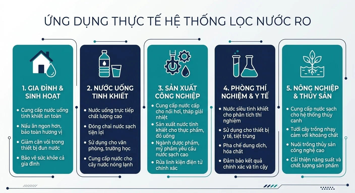 - Giáo dục & Y tế: Cấp nước uống cho trường học, bệnh viện, phòng khám quy mô vừa và nhỏ.